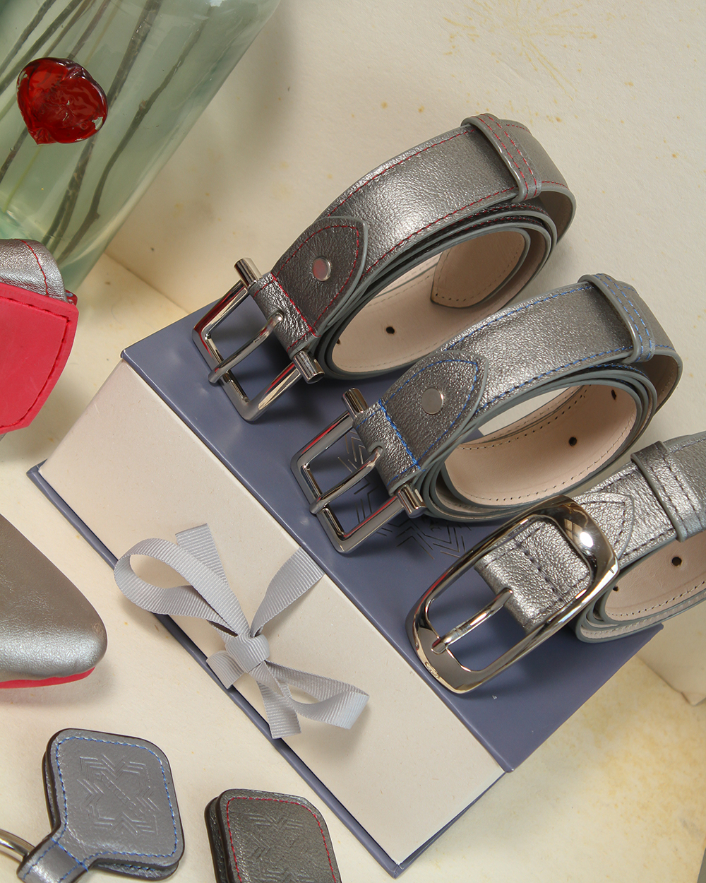 - Herrajes: Importados de colores níquel y dorado, remache y pasador en cuero.